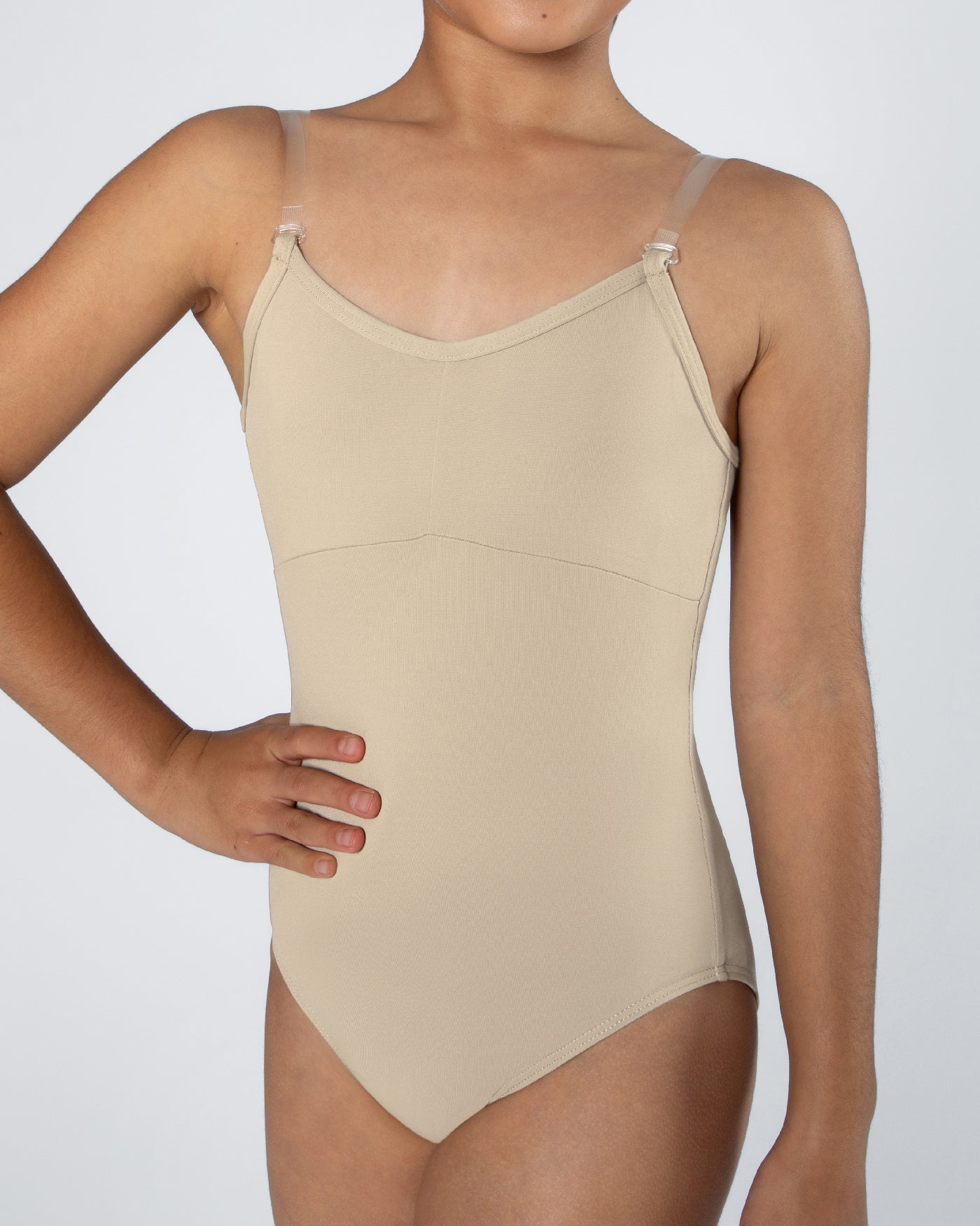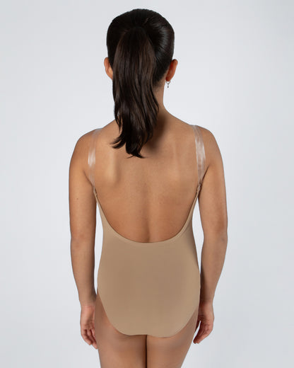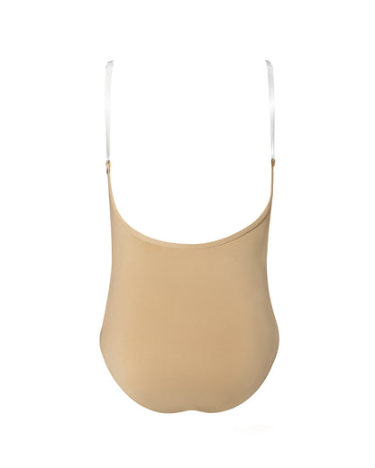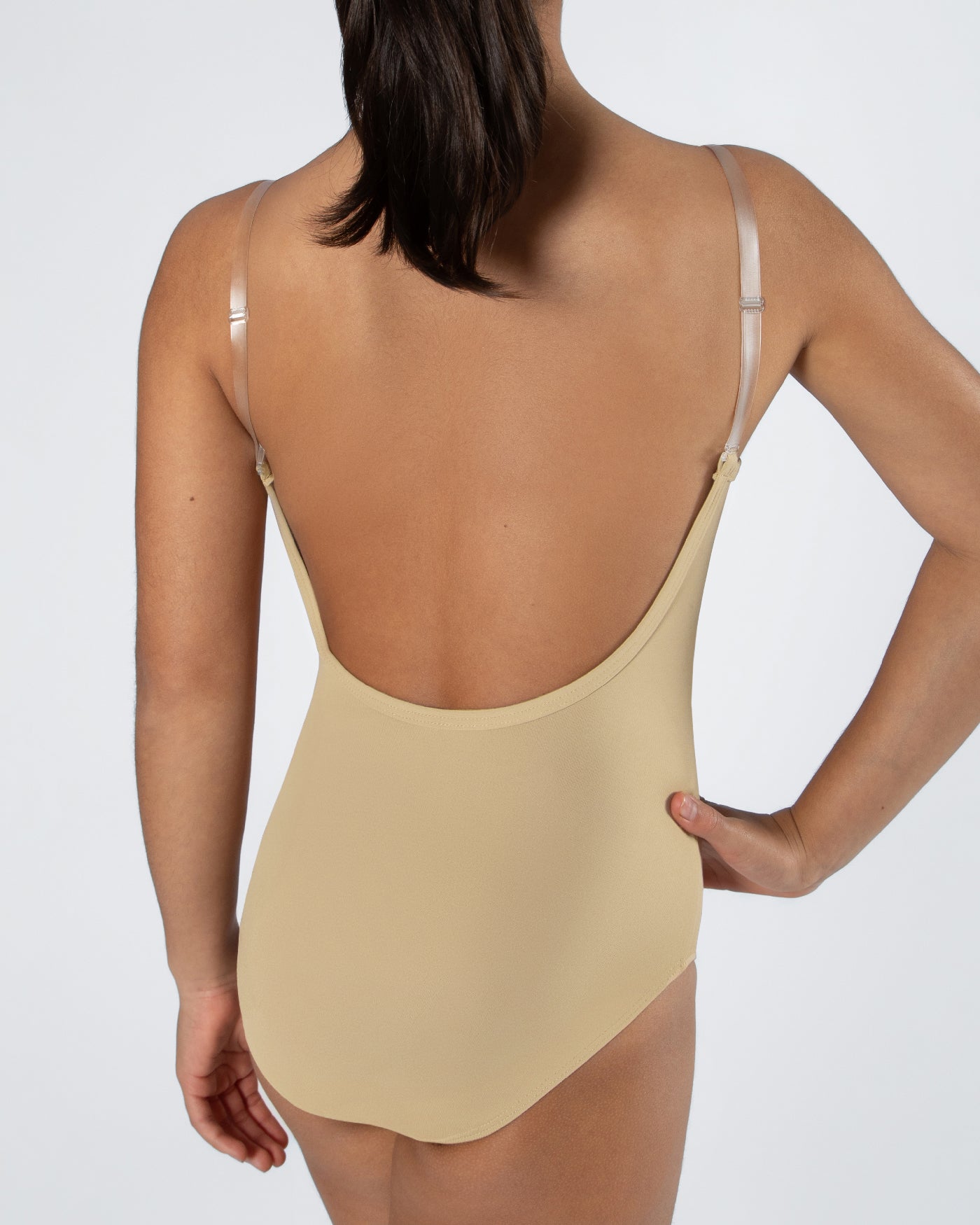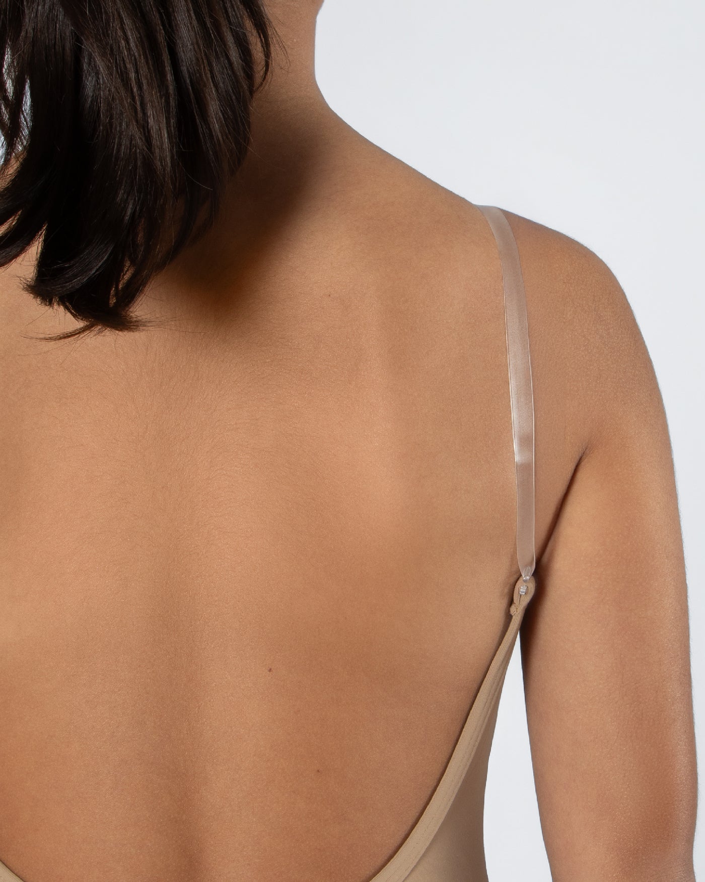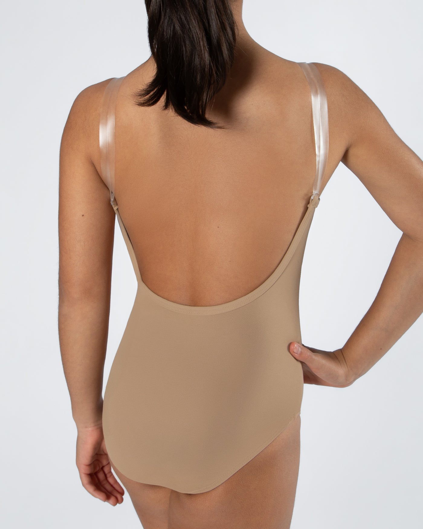 - Low back and adjustable clear straps for added versatility
