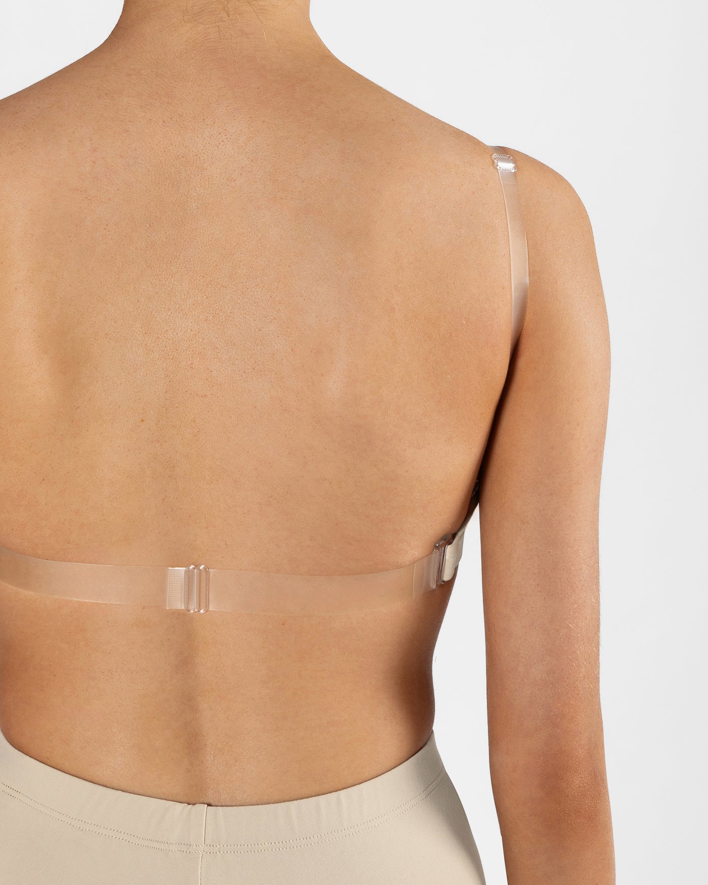 - Clear adjustable straps and a clear back for maximum invisibility