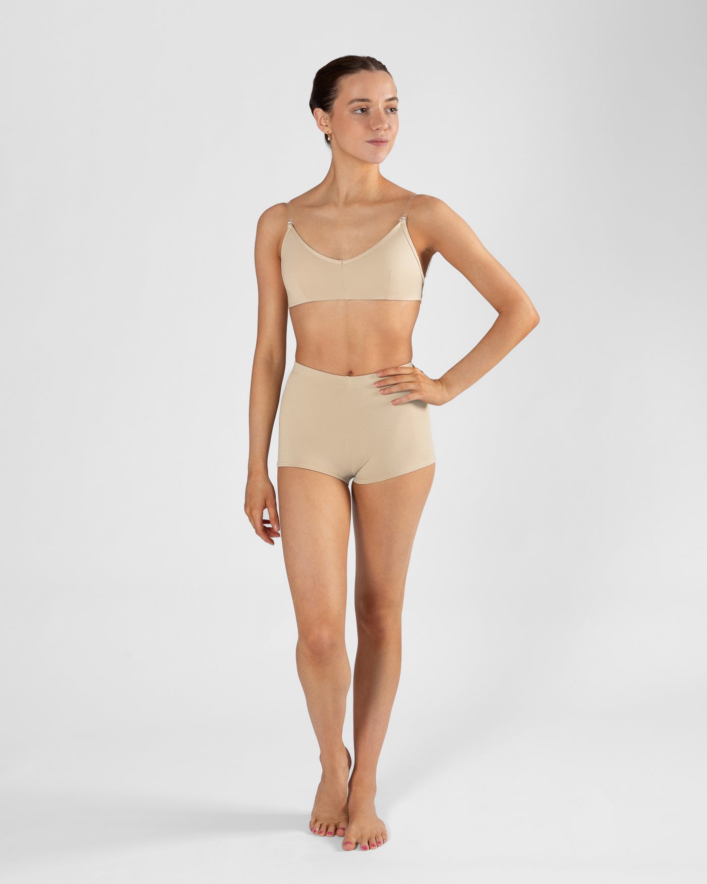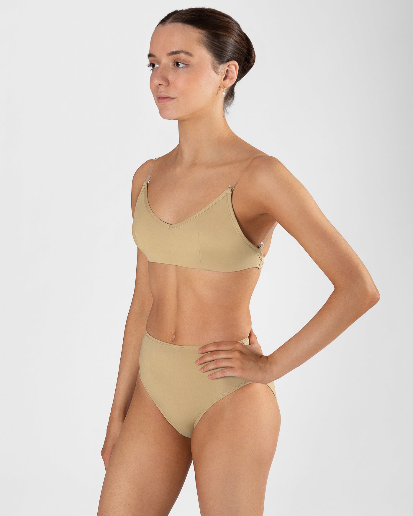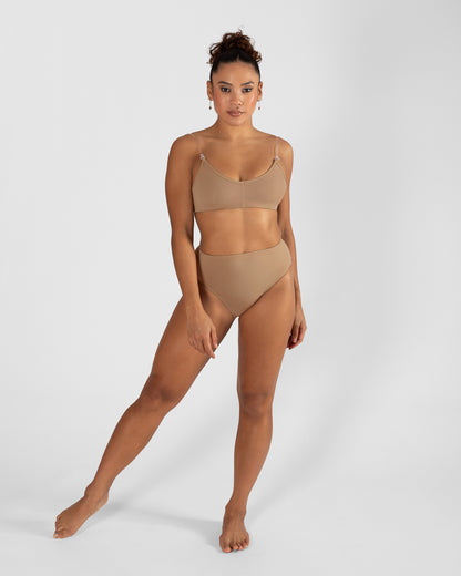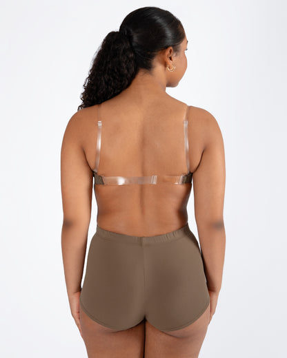 - V neck line and underbust elastic for a discreet, comfortable fit