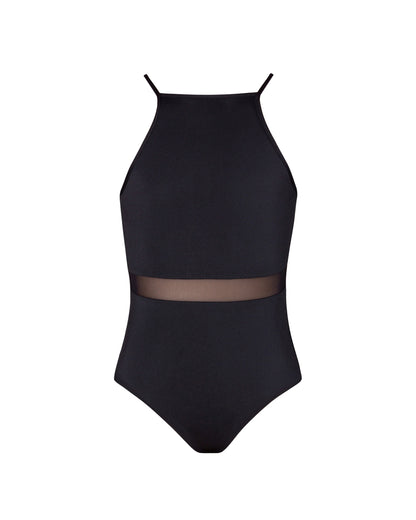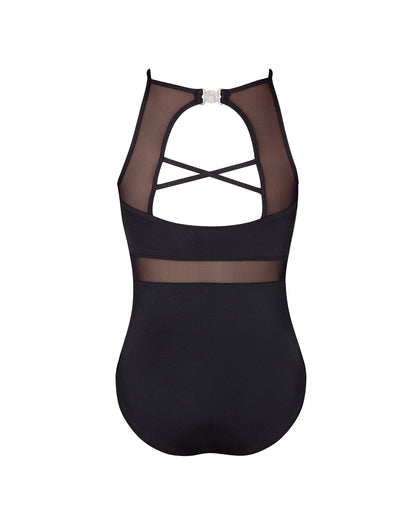 • Features a high neck line cut away at the shoulders for a contemporary aesthetic