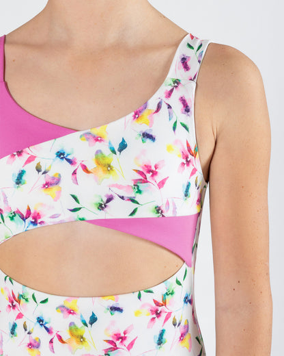 - Two-tone cross-over bodice makes for a unique look