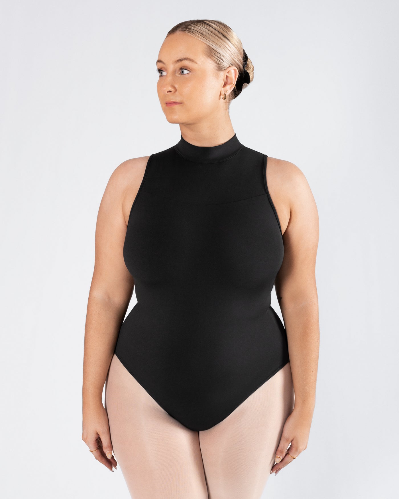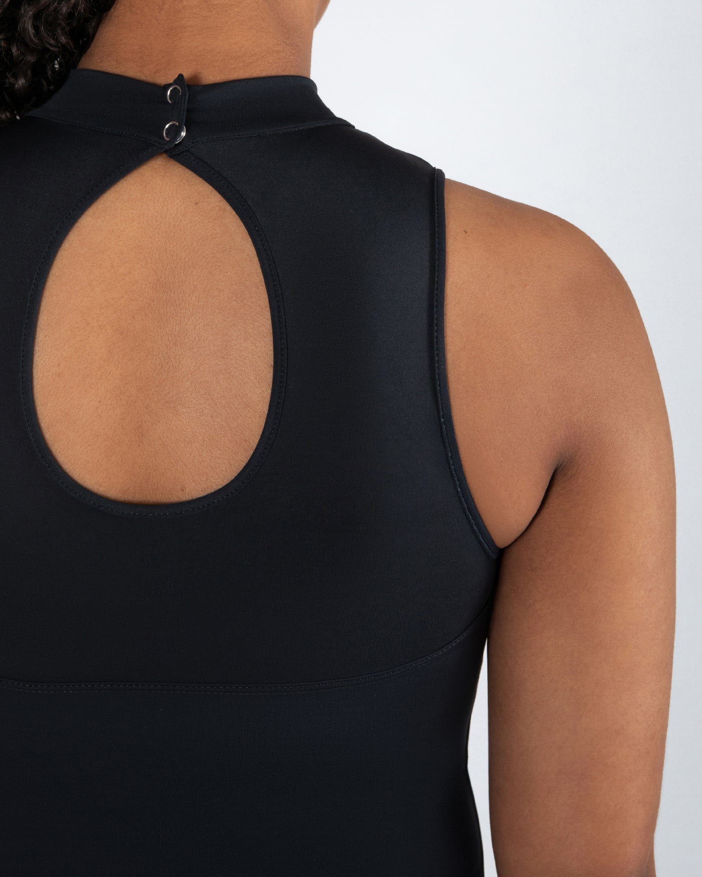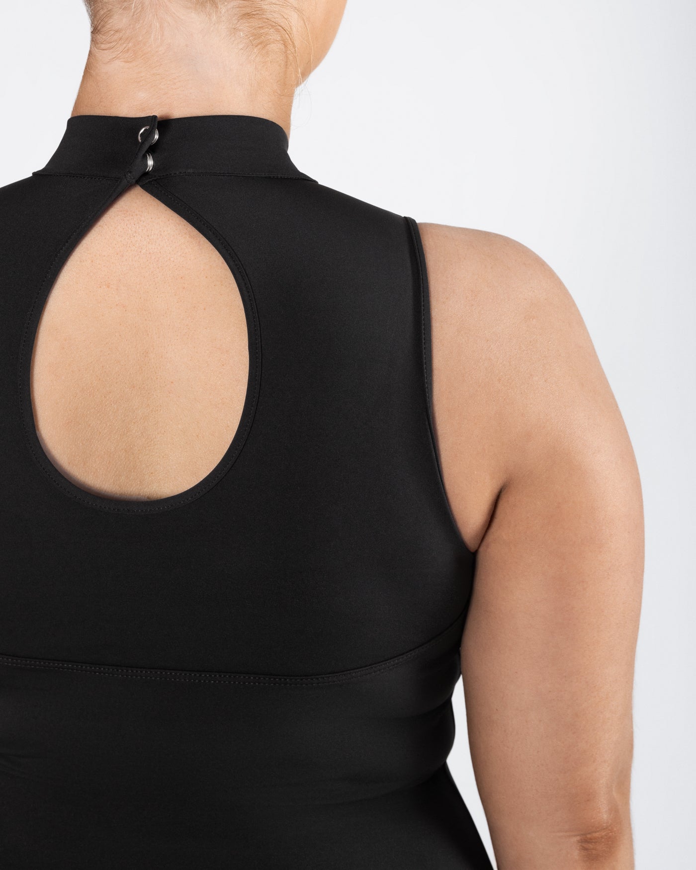 - Features a high neck for uninterrupted line