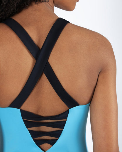 - Scoop neckline and thick straps for all-day support and coverage