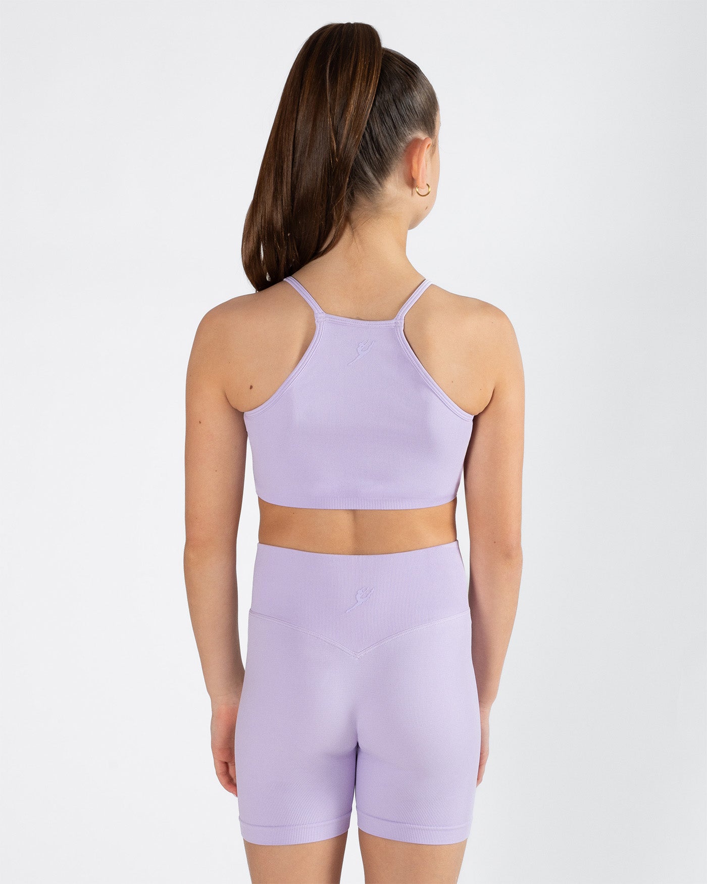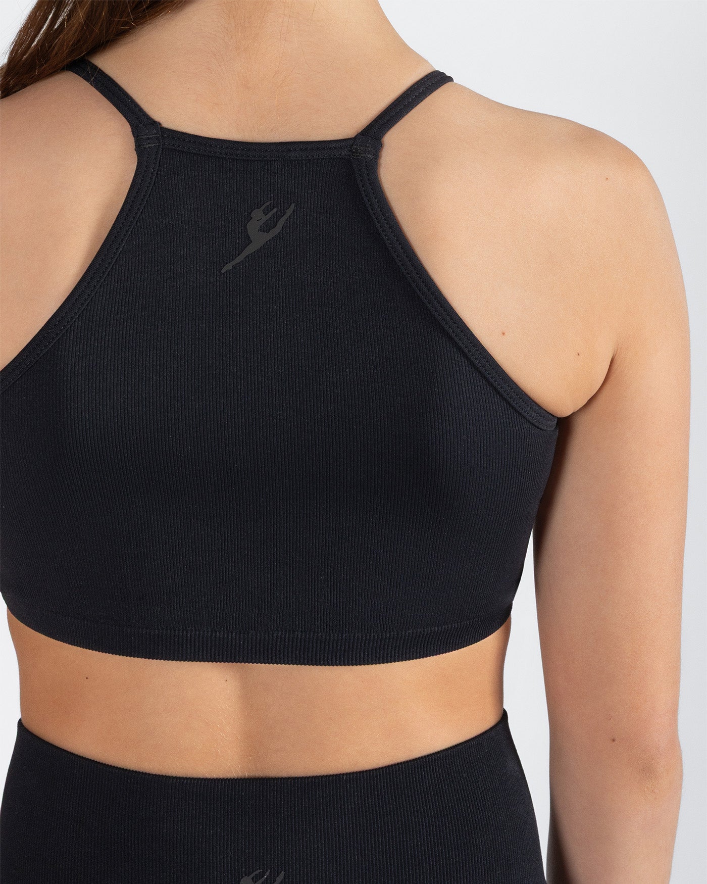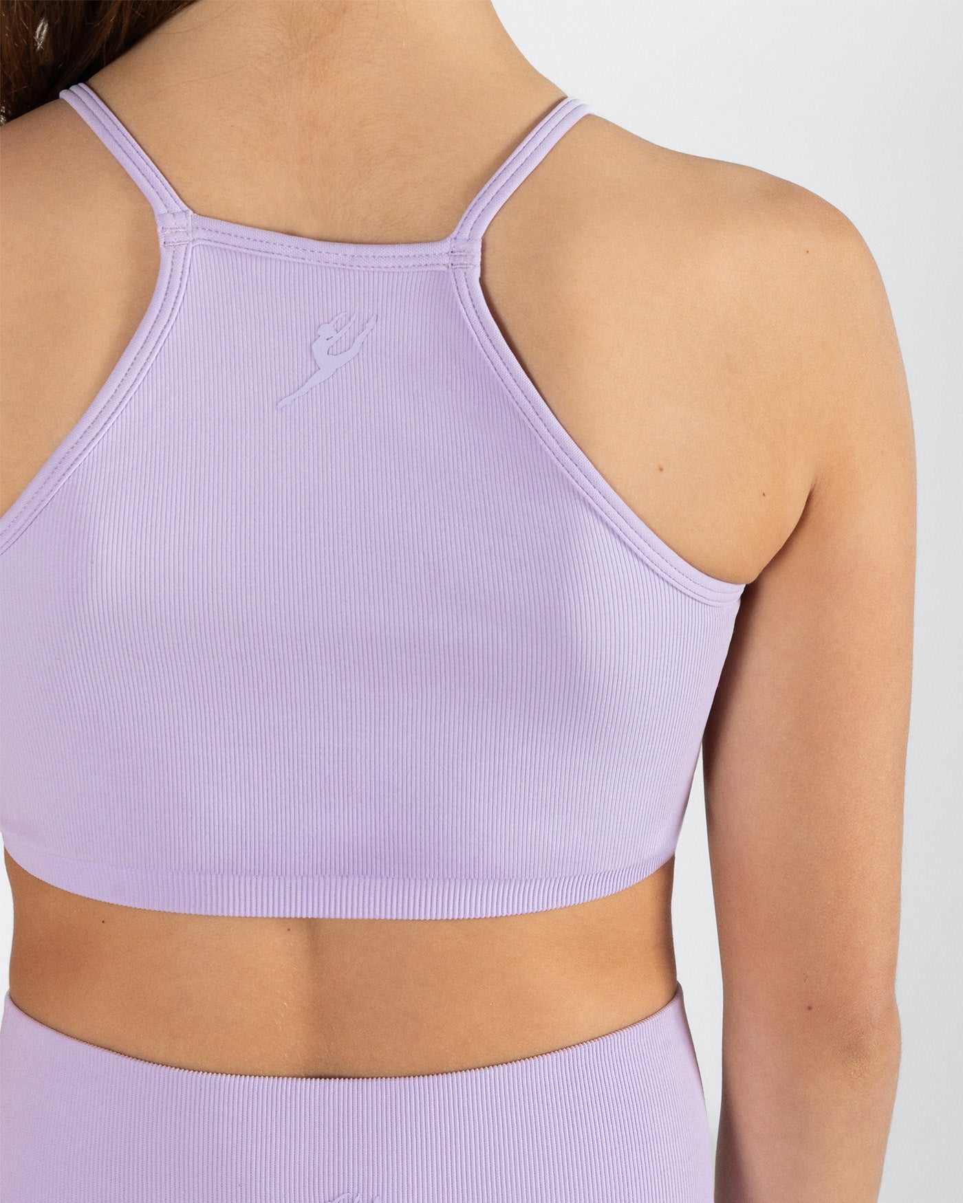 High neckline and racerback design for a modern, athletic look