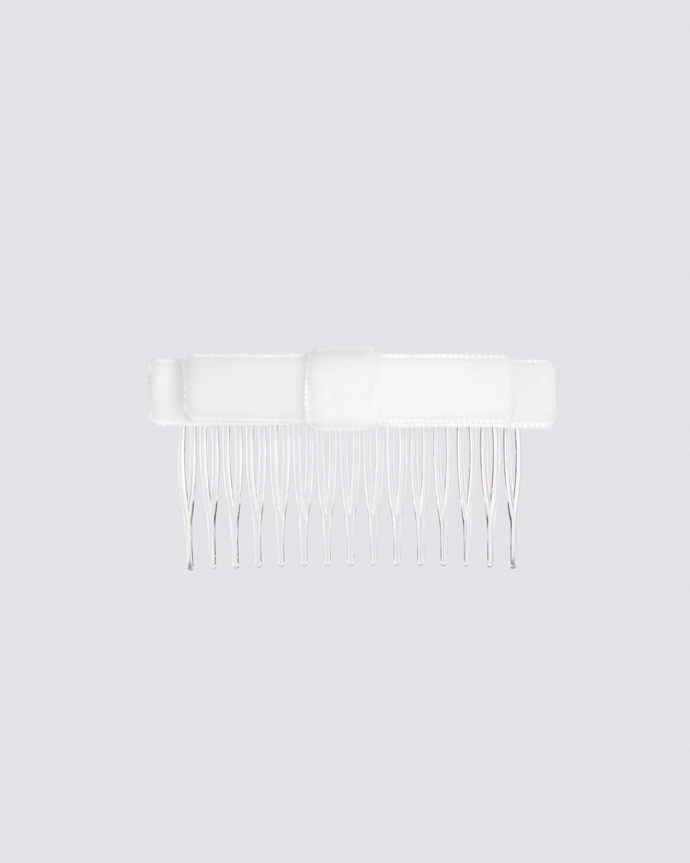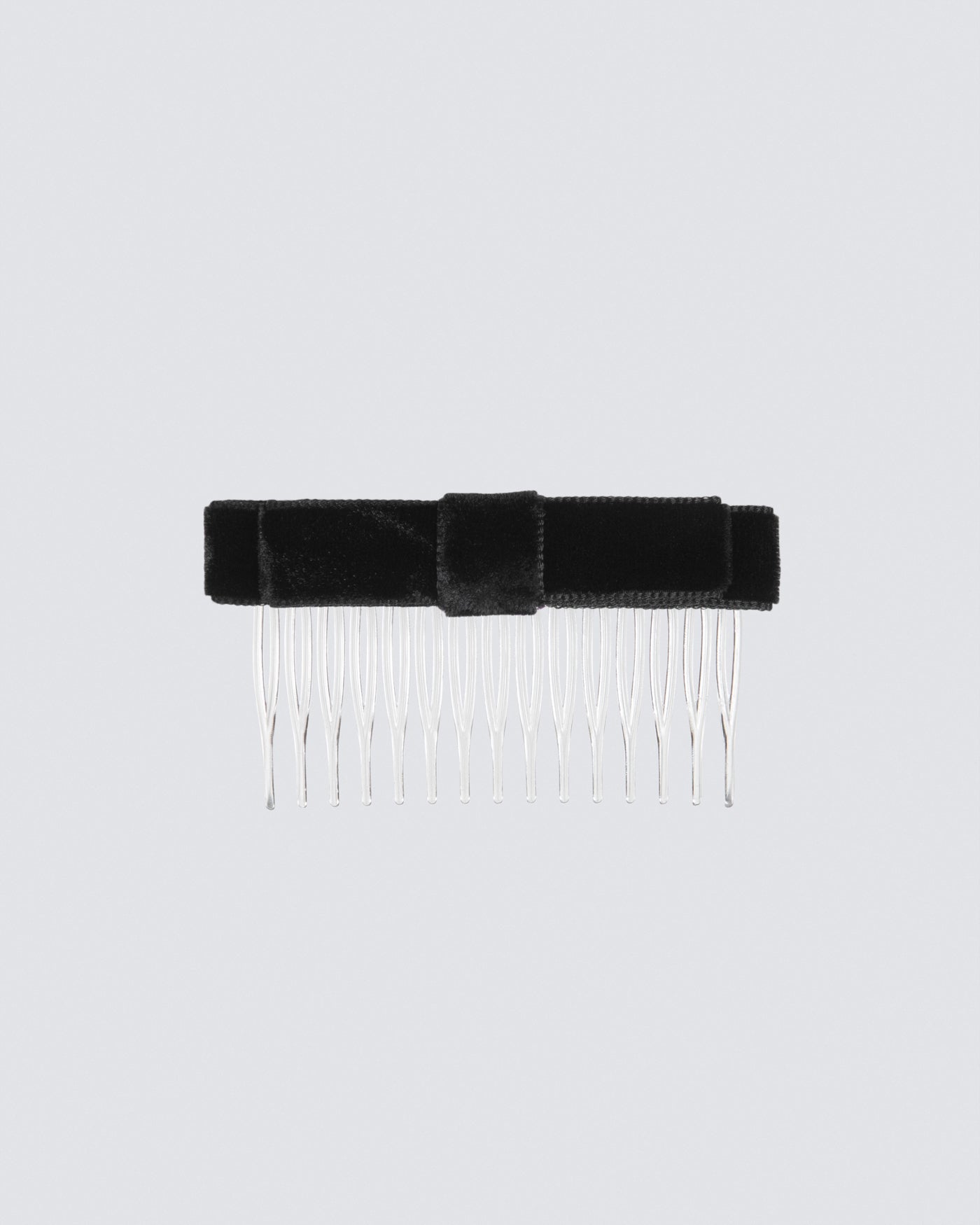 Velvet bow attached to plastic comb. Do not machine wash.